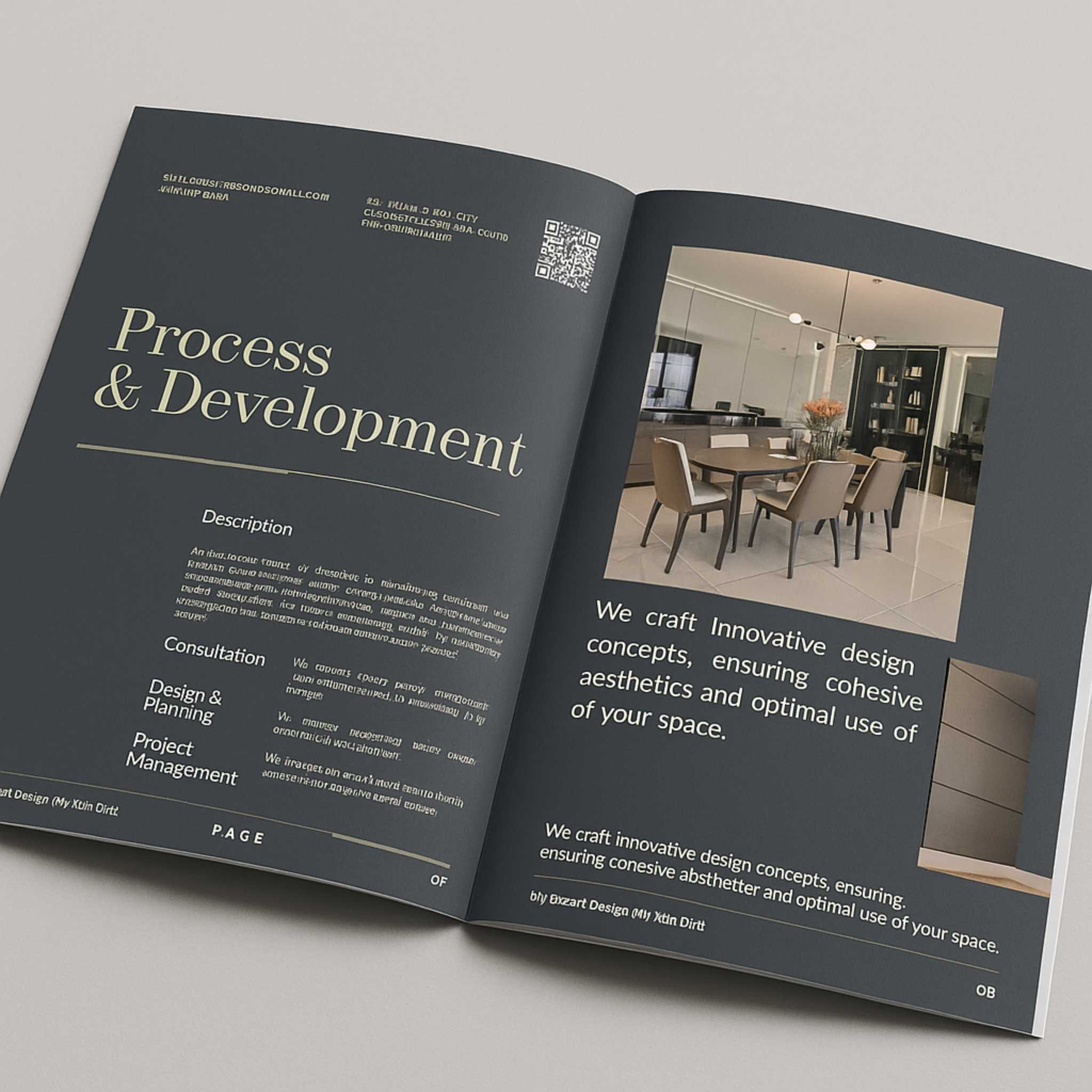 After the client selected her preferred concept, our Art Director worked closely with the design team to translate it into a full profile. Every page was carefully structured, balancing text and visuals to create a professional and easy-to-navigate document.